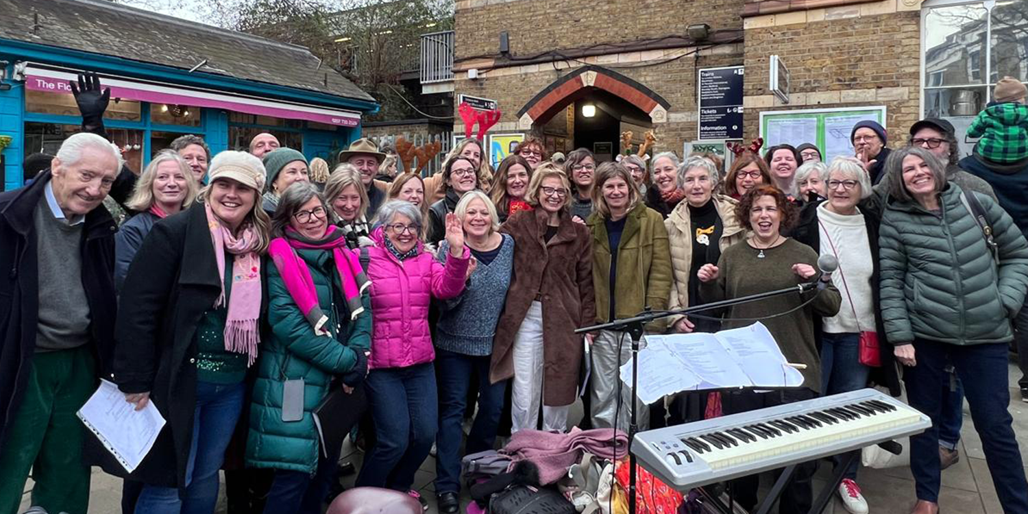 Beautiful mild winter weather for the Cambria Choir to sing to the shoppers of Herne Hill Market.