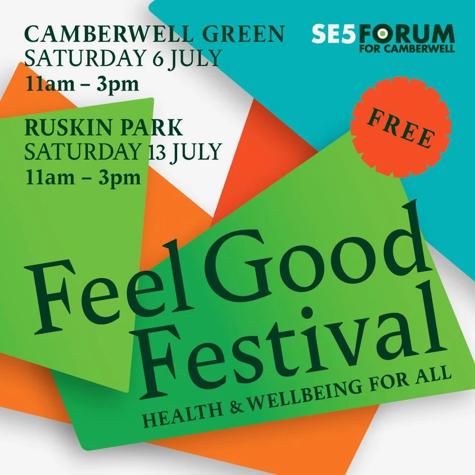 The Feel Good Festival is coming to Camberwell Green on Saturday, 8th July, and Ruskin Park on Saturday, 13th July, from 11am to 3pm. Brought to you by SE5 Forum with the kind support of Kings College Hospital Charity and Lambeth Council.